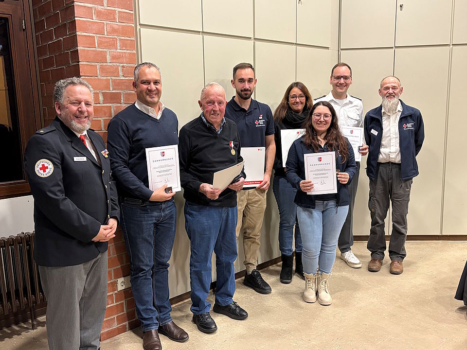 Die Ehrungen nahm der Kreisgeschäftsführer des DRK Kreisverbandes Mosbach e.V. Guido Wenzel vor. Für besondere Verdienste wurde die Bandschnalle Katastrophenschutz des Neckar-Odenwald-Kreises an Julia Huber, Elisabeth Keil, Daniel Keil, Saskia Keil, Christoph Knapp, Anton Schulz und Ina-Marie Wetterauer verliehen. Weiterhin freute man sich über langjährige Vereinsmitglieder und ehrte in diesem Jahr Ursula Wild und Uta Bopp für 45 Jahre, Frank Sander für 35 Jahre und Noah Keil für 15 Jahre.